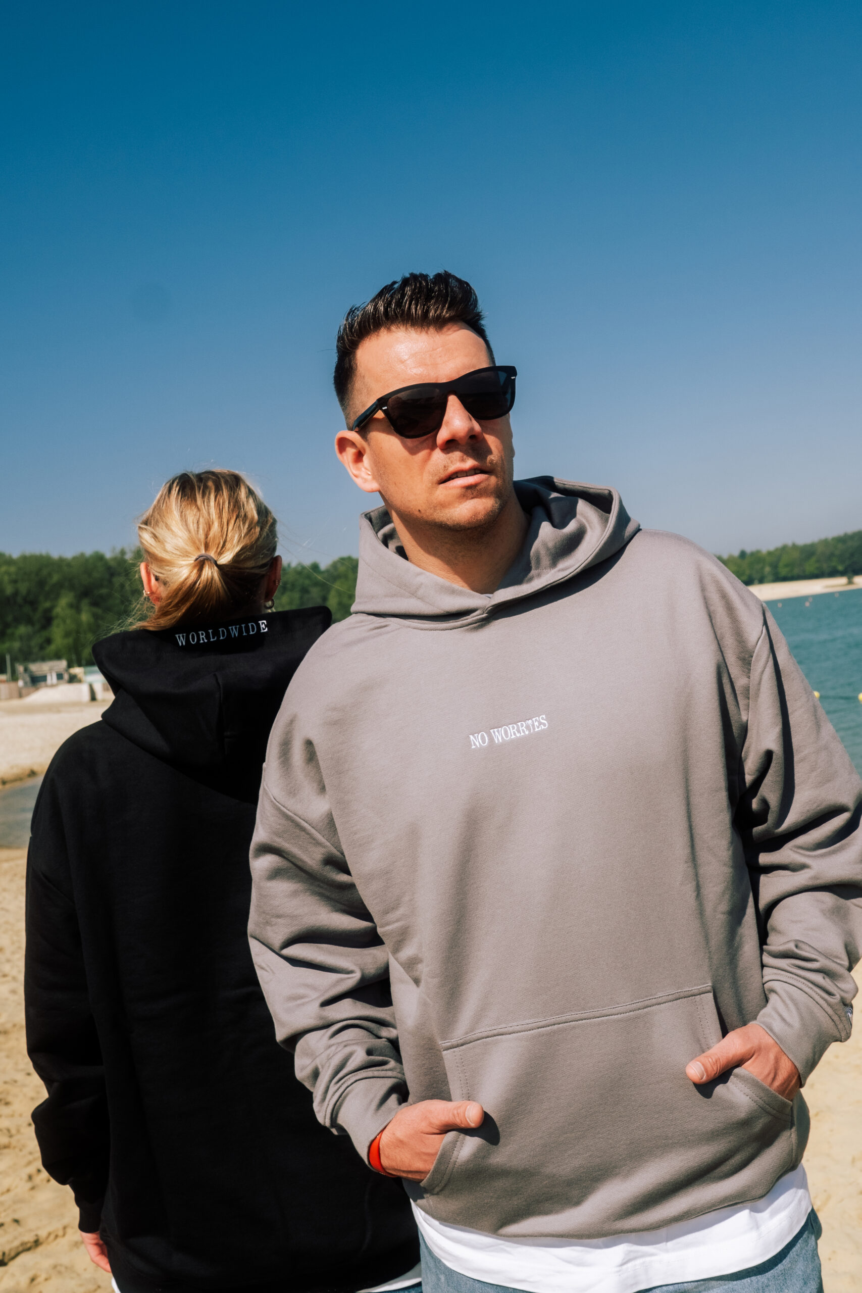 Ob an kühlen Herbsttagen oder in der lauen Frühlingssonne – er ist dein perfekter Begleiter. Die dezenten „No Worries“-Details auf Brust, Kapuze und Ärmel erinnern Dich daran, dass das Leben leicht sein darf.